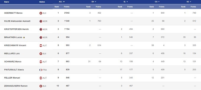 И Одерматт рекорд 23-летней давности легендарного Херманна Майера в 2000 очков таки побил. В скоростном спуске Марко выступил слабо, заняв лишь 15-е место. Хотя это можно списать на теплую погоду и плохое скольжение на трассе, которое с каждым стартовым номером становилось все хуже, особенно наверху. После этого Одерматт выиграл супергигант. В гиганте для побития рекорда ему достаточно было третьего места, но Марко не просто победил, а вынес всех соперников – 2,11 секунды преимущества над вторым местом! Рекорд состоялся, а швейцарец все более прочно укрепляется в роли нового доминатора мужских горных лыж.