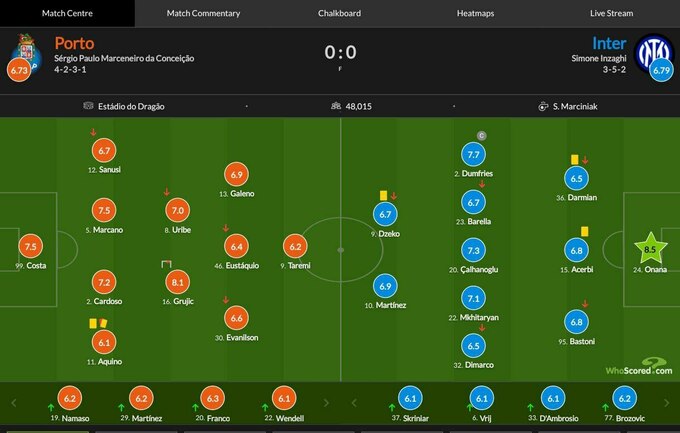 Его выгнали с ЧМ-2022. WhoScored назвал лучшего игрока матча Порту – Интер