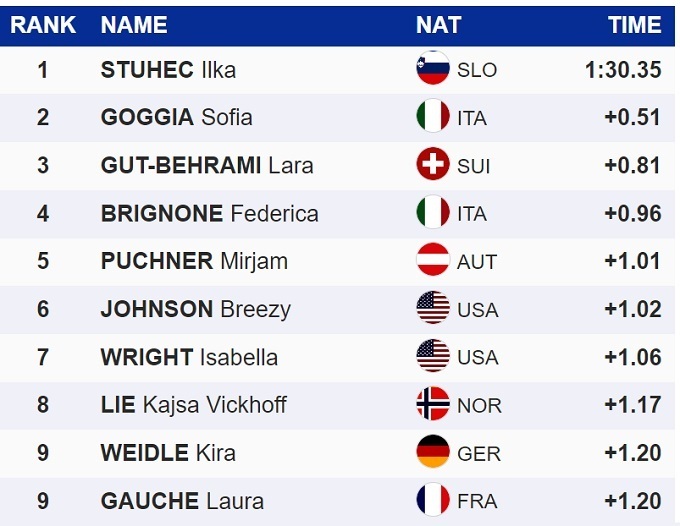 Штухец опередила итальянку Софью Годжу, топ-3 замкнула швейцарка Лара Гут Бехрами.