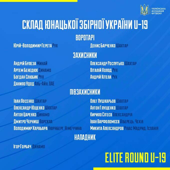 Сине-желтые, как известно, с 22 по 28 марта сыграют в Испании, где померятся силами с ровесниками из испанской сборной (28 марта), а также команд Люксембурга (22 марта) и Дании (25 марта).