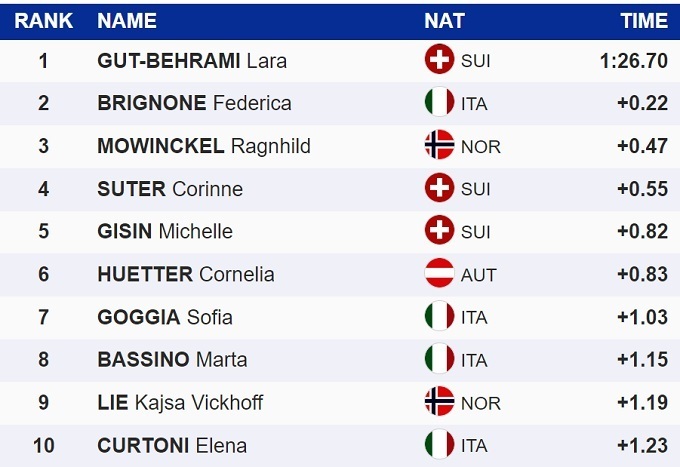 Швейцарская горнолыжница Лара Гут-Бехрами выиграла супергигант на финале Кубка мира в Сольдеу (Андорра). Она опередила итальянку Федерику Бриньоне и норвежку Рагнхильд Мовинкель. Это позволило швейцарке завоевать Малый хрустальный глобус в супергиганте.