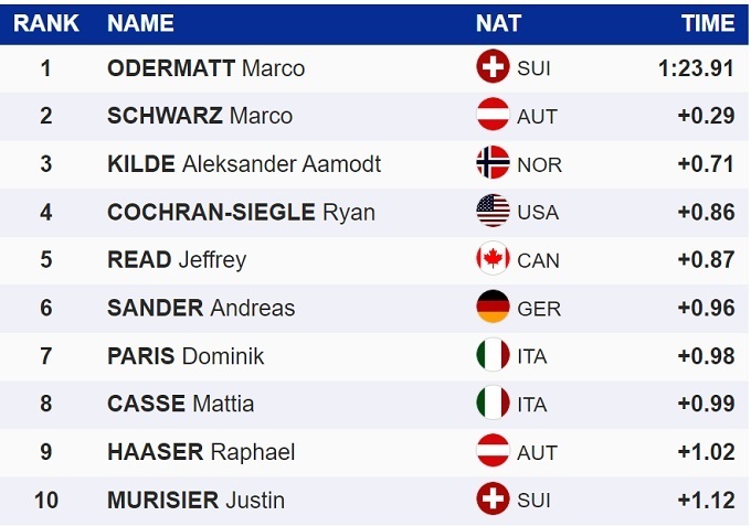 Сьогодні Одермат підтвердив своє лідерство протягом сезону в супергіганті. І буде дивно, якщо він не виграє гігант.