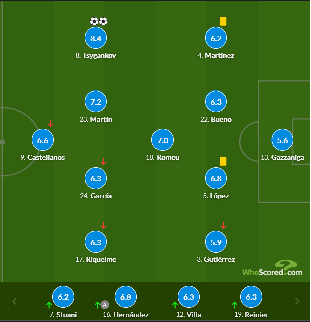 Хавбек оформил дубль, а «Жирона» прервала серию из двух кряду поражений. Цыганков получил оценку 8,4 балла от WhoScored. В составе гостей только Мартин имеет оценку выше 7 баллов.
