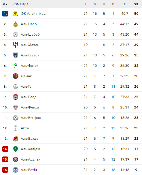 «Аль-Наср» сократил отставание от лидера «Аль-Иттихад» до одного очка (49 проти 50).