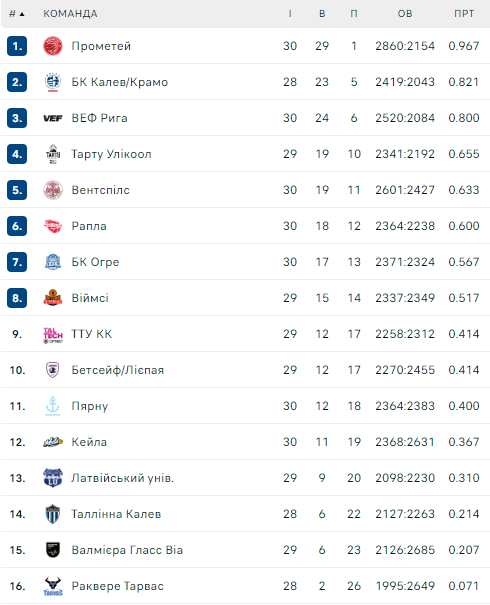 «Прометей» выиграл регулярный чемпионат ЛЭБЛ с 29 победами и всего 1 поражением.