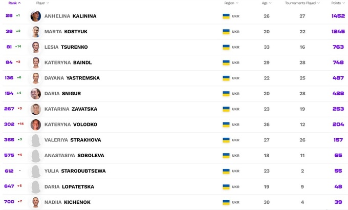 Рейтинг WTA. Калинина, Костюк и Киченок обновили личные рекорды