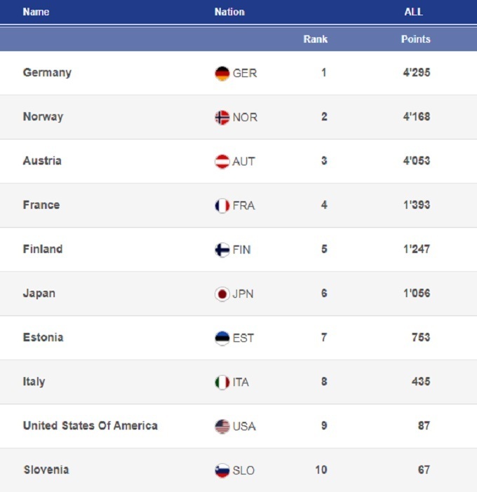 Хоффманн, кстати, начал с очень солидных результатов в тренировках (9-е и 14-е места), и пробился в четверку сборной Германии на командный турнир. Его Бундестим начал за здравие, а закончил за упокой – пятое место. Победу же прогнозировано одержали австрийцы, которые на 26,2 балла опередили Словению. Кто знает, чем бы все закончилось, если бы не Домен Превц, который в Лахти был просто катастрофически нестабилен. Да, во втором раунде командного турнира он выдал роскошный прыжок на 131 метр, но перед этим полностью провалил первую попытку – 95 метров.