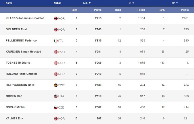 Йенс Лурос Офтебро также был в полном порядке и дважды поднялся на подиум, несмотря на то, что на трамплине ему действительно было нелегко – девятый и пятый результаты. Два попадания в топ-3 позволили Офтебро обойти Шмида и финишировать вторым в общем зачете Кубка мира.