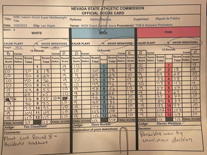 По итогам подсчета записок после 12 раундов все три судьи отдали предпочтение Бенавидесу (115–113, 116–112, 117–111).