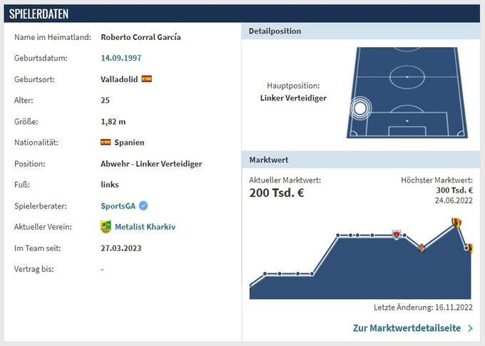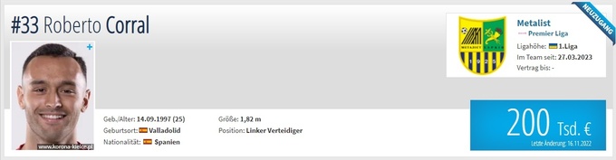 Харьковский «Металлист» пополнил свои ряды 25-летним испанским защитником Роберто Корралем. О подписании игрока сообщает портал Transfermarkt. Соглашение клуба с игроком было заключено 27 марта.