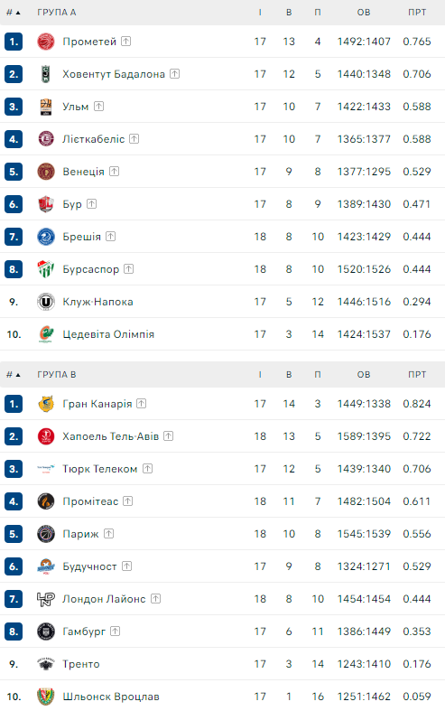 «Прометей» лидирует в группе, имея 13 побед и 4 поражения. Ниже второго места команда Ронена Гинзбурга не опустится. На первую позицию также претендует «Ховентуд» из Испании (12 побед, 5 поражений). «Прометею» нужна победа, чтобы зафиксировать первое место в группе.