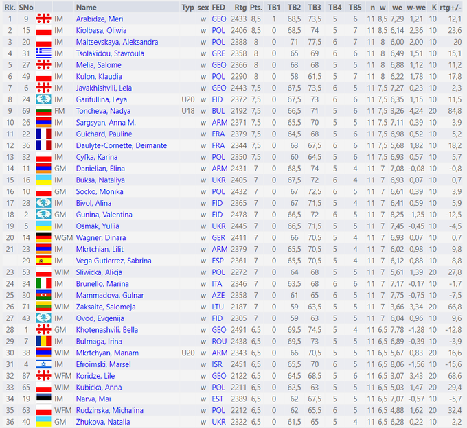 Победителем стала Мери Арабидзе (Грузия) – 8,5 очков, призеры турнира: Оливия Киолбаса (Польша) – 8,5 очков, Александра Мальцевская (Польша) – 8 очков.