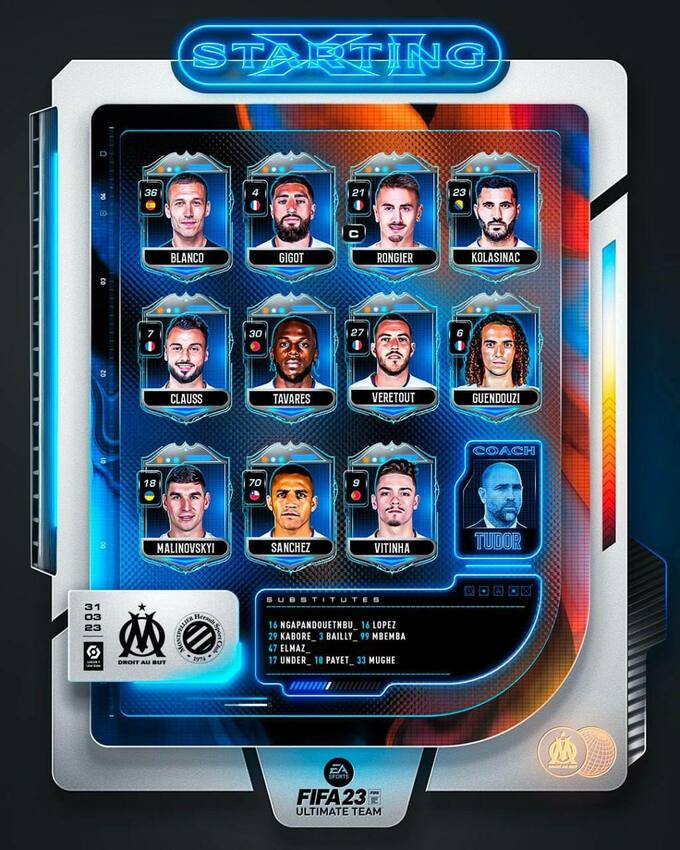 «Марсель»: Бланко, Ронжье, Жиго, Колашинац, Тавареш, Гендузи, Верету, Клаусс, Санчес, Малиновский, Витинья