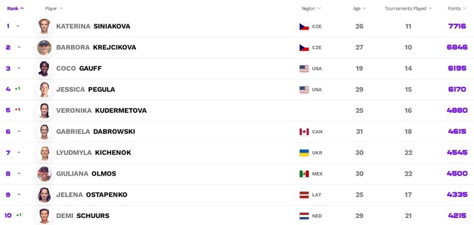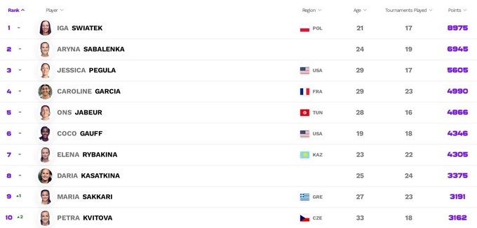 Также немного улучшила свое место гречанка Мария Саккари, швейцарка Белинда Бенчич покинула первую десятку.