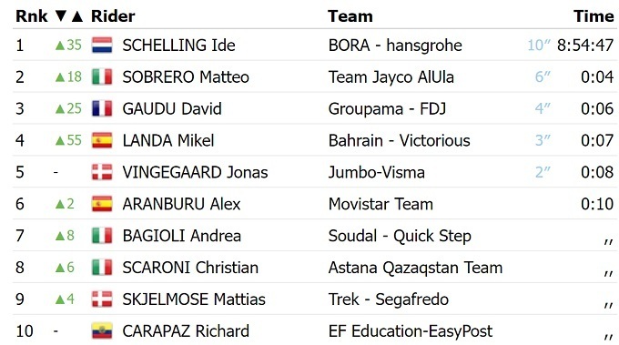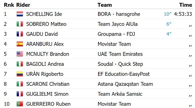Нидерландский велогонщик команды «Bora Hansgrohe» Иде Схеллинг выиграл второй этап Тура Страны Басков. В финишном спринте он опередил итальянца Маттео Собреро из «Jayco AlUla» и Давида Году из «Groupama FDJ». Эта победа позволила Схеллингу перехватить лидерство в общем зачете многодневки.