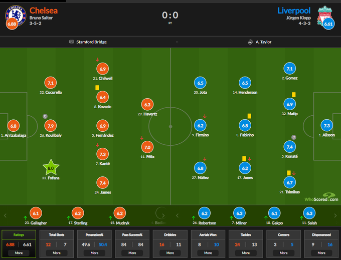 Оценки WhoScored за матч Челси – Ливерпуль – 0:0