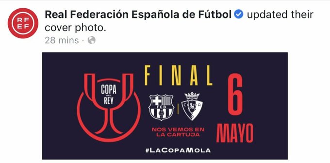 Испанская футбольная федерация (RFEF) ошибочно анонсировала: «Барселона» сыграет в финале Кубка Испании (см. фото).