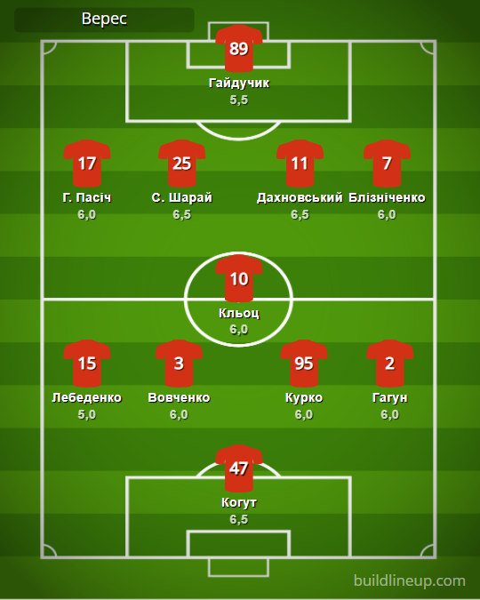 «Верес»: Когут – Лебеденко, Вовченко, Курко, Гагун – Клец – Г. Пасич, С. Шарай, Дахновский, Близниченко – Гайдучик (М. Шестаков, 83).