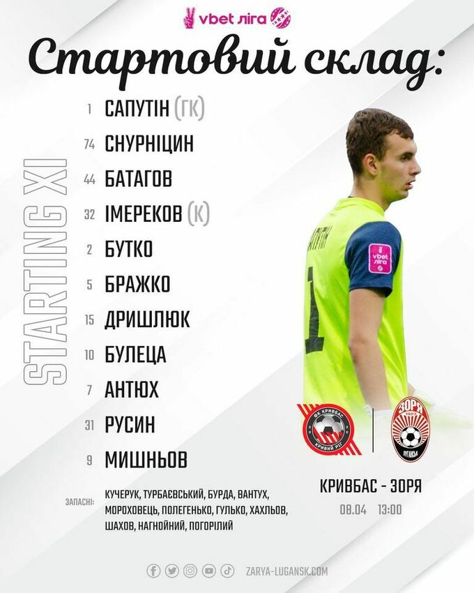«Заря»: Сапутин – Имереков, Батагов, Бутко, Снурницын, Бражко, Дришлюк, Булеца, Русин, Антюх, Мишнев.