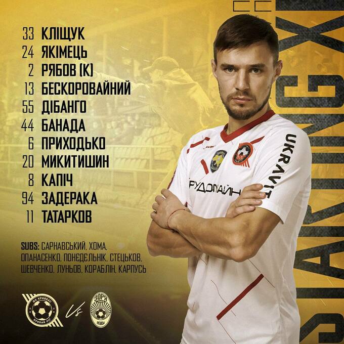 «Кривбасс»: Клищук – Якимец, Рябов, Бескоровайный, Дибанго, Банада, Приходько, Задерака, Капич, Татарков, Микитишин.