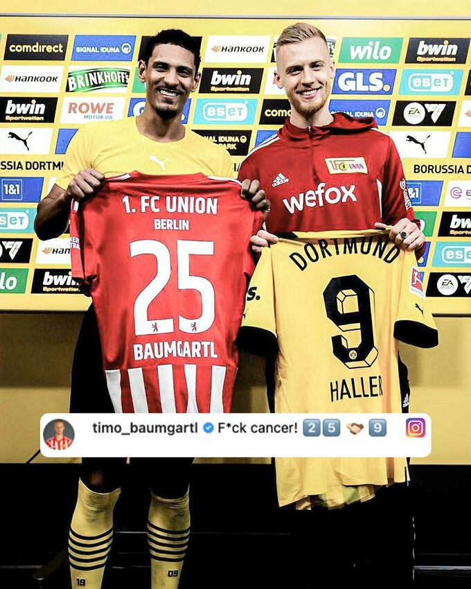 Нападающий дортмундской «Боруссии» Себастьян Алле и защитник «Униона» Тимо Баумгартль обменялись футболками после матча 27-го тура Бундеслиги.