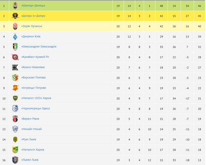 Таблица УПЛ. Шахтер, Днепр-1 и Динамо выиграли, Заря уступила