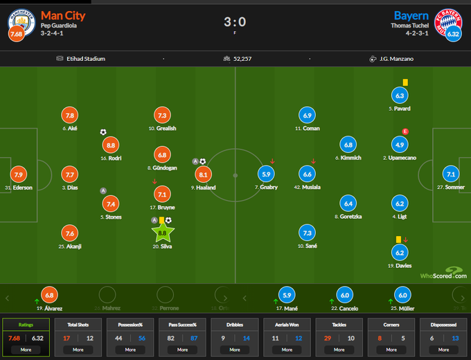 Оценки WhoScored за матч Манчестер Сити – Бавария – 3:0