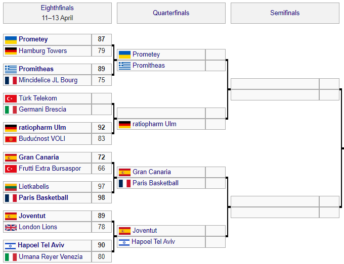 - Хапоэль Тель-Авив (Израиль) – Венеция (Италия) – 90:80 (24:16, 24:16, 29:23, 13:25)