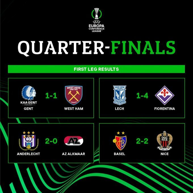 14 апреля состоялись первые матчи 1/4 финала Лиги конференций.