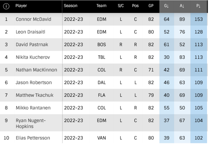 До Макдэвида это удавалось только Филу Эспозито (1 раз) и Уэйну Гретцки (5 раз).