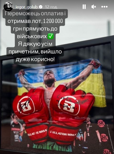 Перчатки украинского бойца ММА Ярослава Амосова нашли нового обладателя через благотворительный аукцион. Об этом сообщил в инстаграме тренер Егор Голуб.
