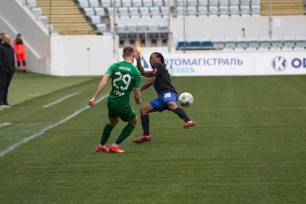 Моменты, в которых реально было забить, можно было бы сосчитать в первом тайме по пальцам одной руки. Подопечных Григорчука дважды выручил каркас ворот – сначала удар головой Степанюка после навеса Олийныка приняла на себя перекладина, а позже навес слева от Бацулы никто не сумел замкнуь и мяч вылетел за пределы поля, скользнув по основе правой штанги.