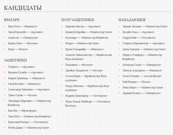 Зинченко будет готов сыграть в ближайшем матче Арсенала В список претендентов среди прочих вошли украинский защитник лондонского «Арсенала» Александр Зинченко, норвежский нападающий Эрлинг Холанд из «Манчестер Сити», а также Букайо Сака, Вильям Салиба и Мартин Эдегор из «Арсенала», Каземиро из «Манчестер Юнайтед».