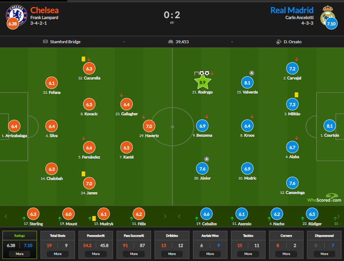 Оценки WhoScored за матч Челси – Реал – 0:2