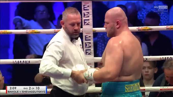С первых секунд Баколе доминировал в ринге. Шевадзуцкий только защищался, а пропустив несколько ударов, поплыл. Во втором раунде Украинский Халк оказался на помосте – рефери отсчитал нокдаун.