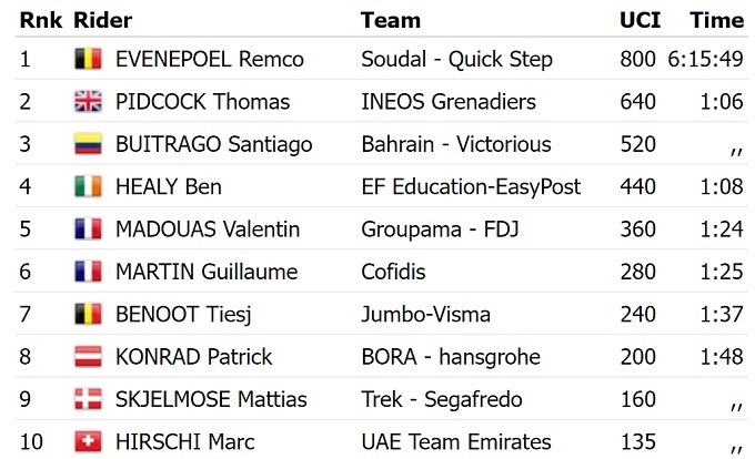 Бельгийский велогонщик команды «Soudal Quick Step» Ремко Эвенпул выиграл престижную однодневку Льеж – Бастонь – Льеж. Он опередил британца Тома Пидкока из «Ineos Grenadiers» и Сантьяго Буйтраго из «Bahrain Victorious».