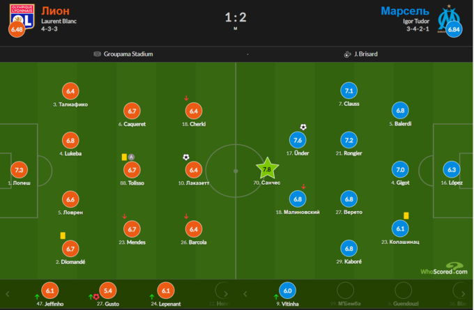 Украинский полузащитник «Марселя» Руслан Малиновский вышел в стартовом составе и провел на поле 83 минуты, после чего был заменен.