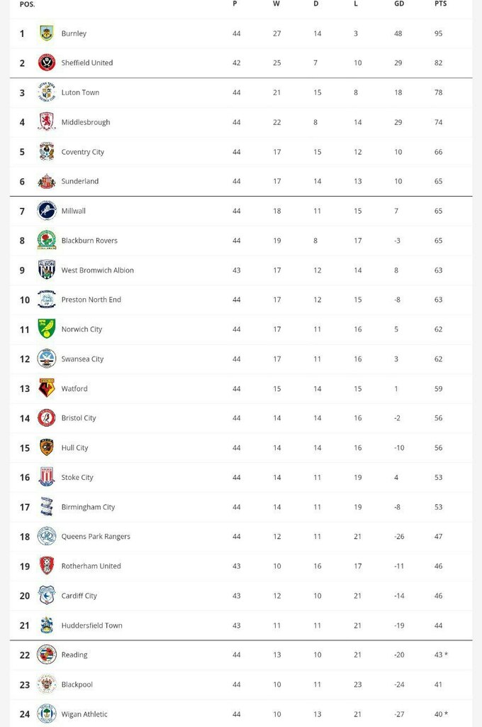 «Бернли» имеет в своем активе 95 очков после 44 сыгранных туров. До финиша регулярной части соревнований осталось 2 игры. У ближайшего преследователя «Шеффилд Юнайтед» на 13 пунктов меньше. Хоть у «клинков» сыгранно на 2 матча меньше, «Бернли» все равно для них недосягаем.