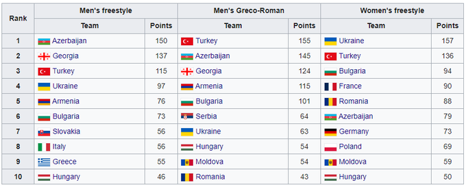 В очковом зачете украинская команда в женской борьбе стала первой, в вольной борьбе у мужчин – 4-й, в греко-римской борьбе – 7-й.
