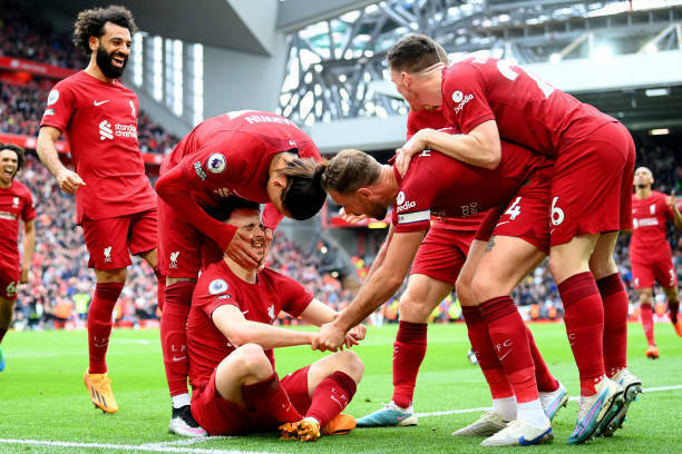 За первые 15 минут матча хозяева поля забили три гола (3:0), отличились Кертис Джонс, Луис Диас, Мохамед Салах