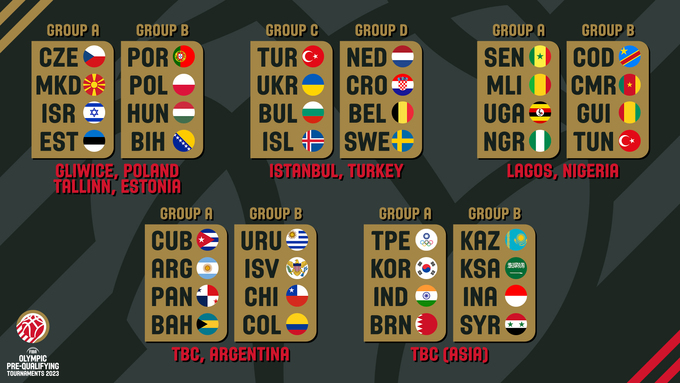 Состоялась жеребьевка групп пре-квалификационного баскетбольного турнира Олимпийских Игр 2024 года.
