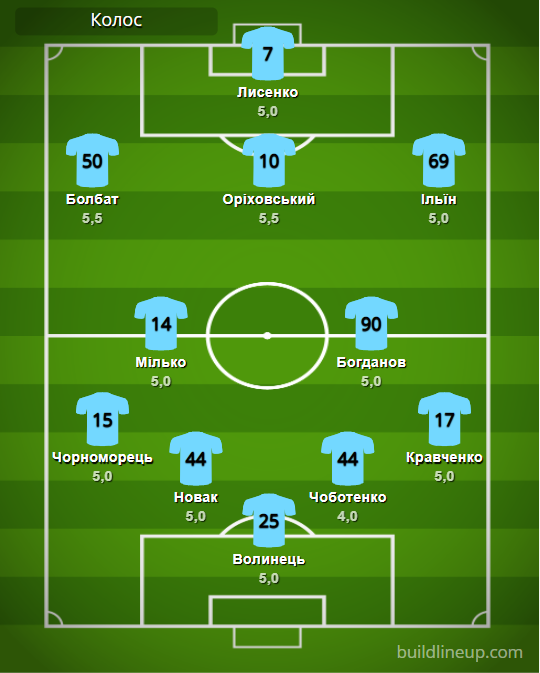 «Колос»: Волынец – Черноморец, Новак, Чоботенко, Кравченко – Милько, Богданов (Исаенко, 61) – Болбат (Гусол, 86), Ориховский, Ильин (Велетень, 86) – Лысенко (Попов, 60).