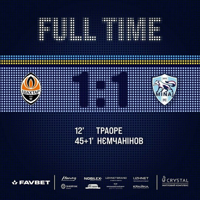 Пресс-служба «Миная» сообщила, что закарпатский клуб вырвал ничью в матче против донецкого «Шахтера» (0:1).