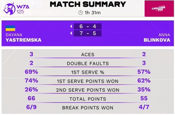 В следующем раунде Ястремская сразится против первой сеяной швейцарки Жиль Тайхманн (№30 WTA).