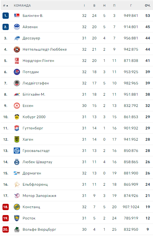 Во второй Бундеслиге «Мотор» имеет 9 побед, 3 ничьих и 19 поражений. Запорожская команда набрала 21 очко и занимает 17-е место среди 20 команд.