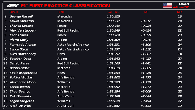 В рамках первого в сезоне гран-при Формулы-1 в США команды и пилоты прибыли в Майами. Состоялись первые две тренировочные сессии, которые принесли ожидаемые и неожиданные результаты.