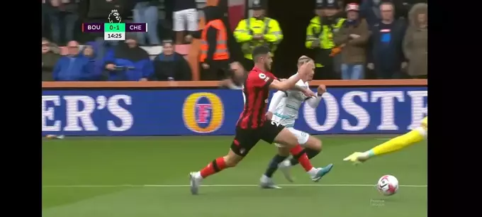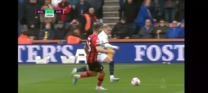 Мудрик упал на газон когда пытался прокинуть мяч дальше защитника «вишен», однако решил или симулировать, или почувствовал касание соперника и картинно упал.