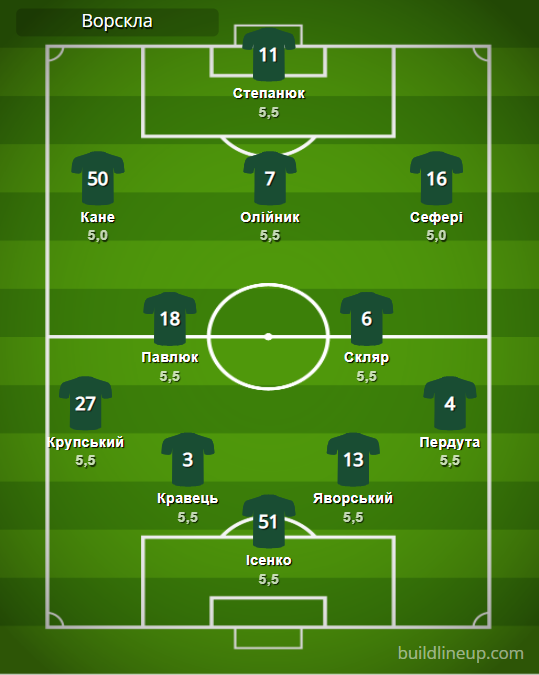 «Ворскла»: Исенко – Крупский, Кравец, Яворский (Черныш, 67), Пердута – Павлюк, Скляр – Кане (Лопес, 87), Олейник (Нестеренко, 67), Сефери – Степанюк.