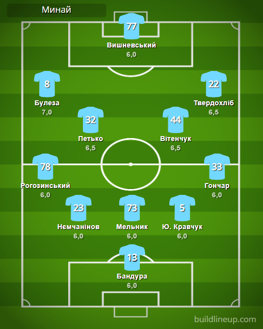 «Минай» (замены): Чуев – б/о, Шишка – б/о, Гечев – б/о, Коломоец – б/о.