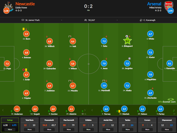 Оценки за матч Ньюкасл – Арсенал – 0:2 от WhoScored